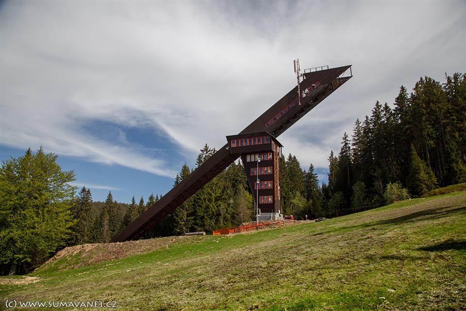 Naprosto unikátní rozhledna na vrcholu bývalého skokanského můstku, který přestal sloužit svým účelům v polovině 90.