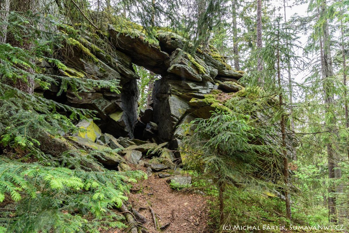 Z Kašperských Hor : po červené, údolím říčky Losenice pozvolna stoupáme proti proudu. Podél cesty jsou vidět sejpy, připomínající rýžování zlata. Z obou stran nás obklopí kamenná moře a zanedlouho dojdeme na Popelnou. Zde odbočíme kolmo vpravo a prudkým stoupáním se dostaneme k Obřímu hradu.